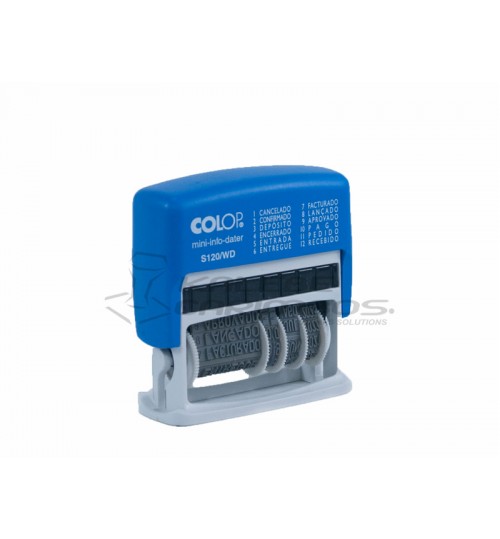 Carimbo Datador Colop Mini-info S 120/WD – 4×42 mm (vários dizeres e data