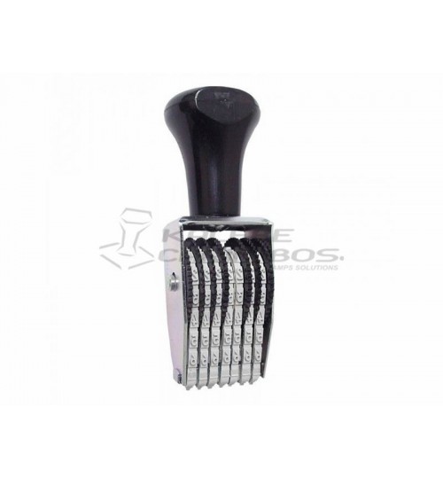 NUMERADOR GIRATÓRIO DE BORRACHA MANUAL DE 07 DÍGITOS COM TIPOS DE 3MM DE ALTURA.