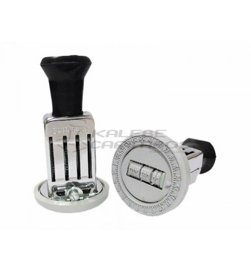 Datador com base diametro 50mm corpo metal cromado com escala horária de 24 hs e espaço para personalização de textos.
